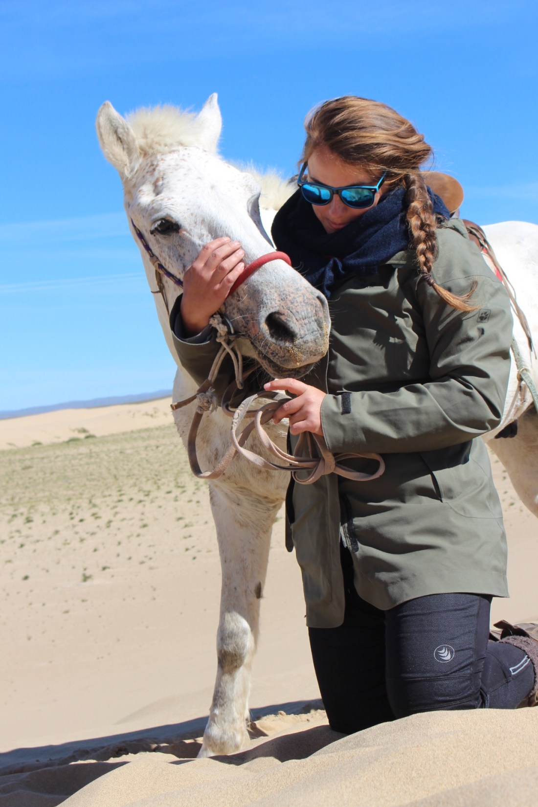 • Spending your days with Mongolian Horses, trusting them, counting on them, reminded me of handling foals, because the thing is, Mongolian Horses are quite wild. And first of all they are ponies, they are quite small, not what you would expect when you hear the old stories of Genghis Khan, fighting with his war horse. Still ponies who are very robust and can kick quite hard. As with foals you can never fully trust them, you have to watch their hind legs and they are quite easily startled, but so lovely.