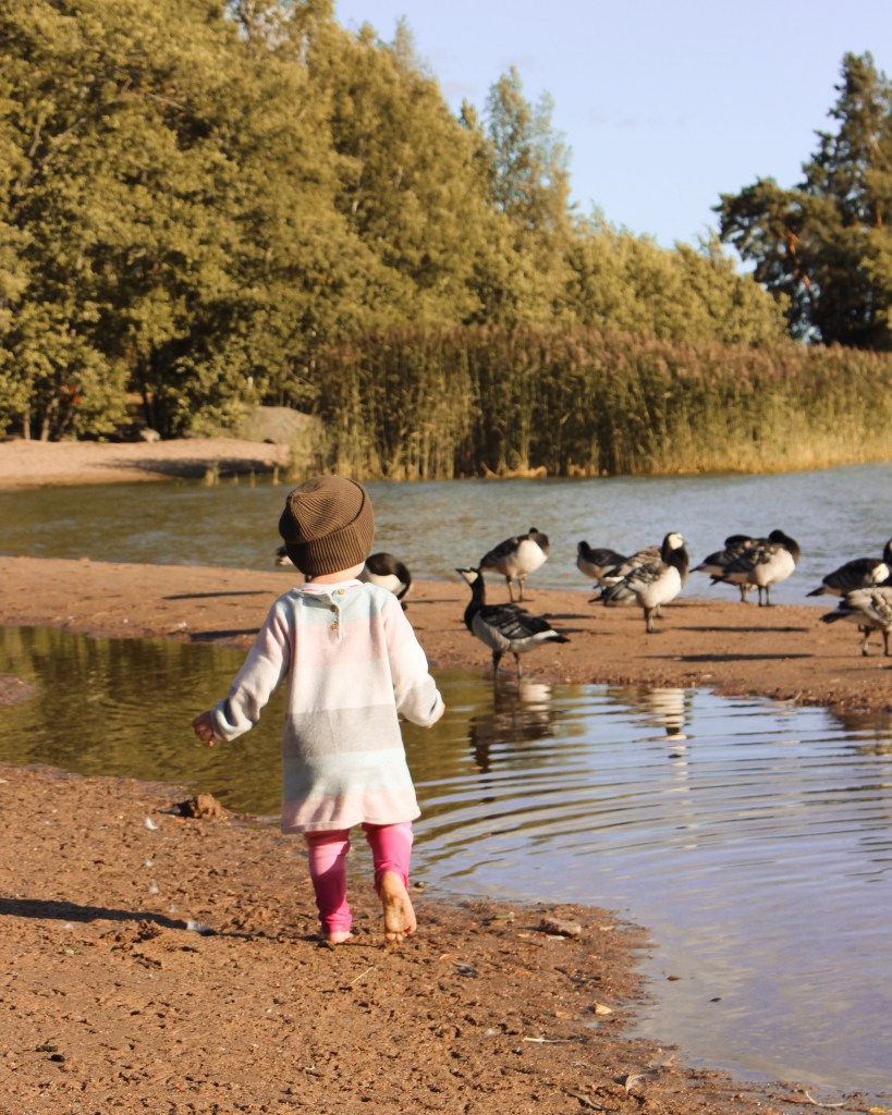 Am Meer, an dem Felsen in Sandstrand übergehen, gab es ein neues großes Highlight für die Kleine: Gänse. Eine Liebe die fast, aber nur fast, ihre Möwenliebe übertraf. Kaum kamen die Vögel in ihre Sichtweite ging es nur noch „da“ „die Gänse“ „da“ „die Gänse“ „da“…
