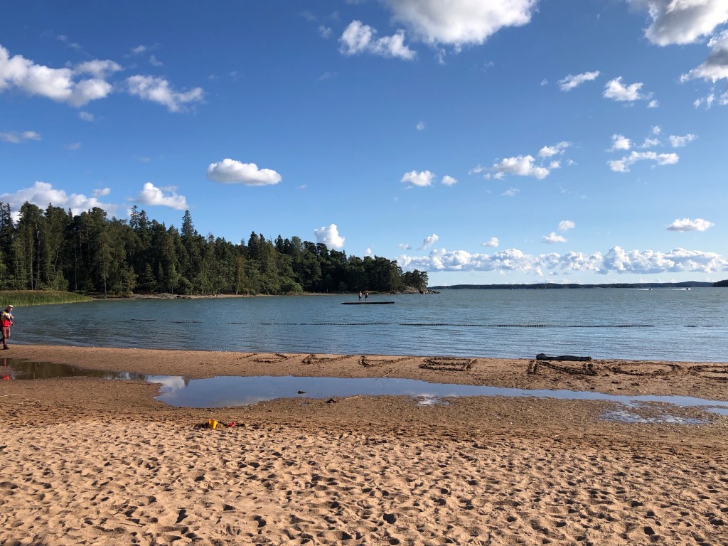 Nur 30 min von Helsinkis Zentrum entfernt, ist dieser See ein guter Ort und schwimmen zu gehen, Golf Frisbee zu spielen oder vieles mehr. Wie so oft gibt es einen öffentlichen Strand mit Hundeverbot und gleich daneben einen Hundestrand, den wir mal wieder ganz für uns alleine hatten.